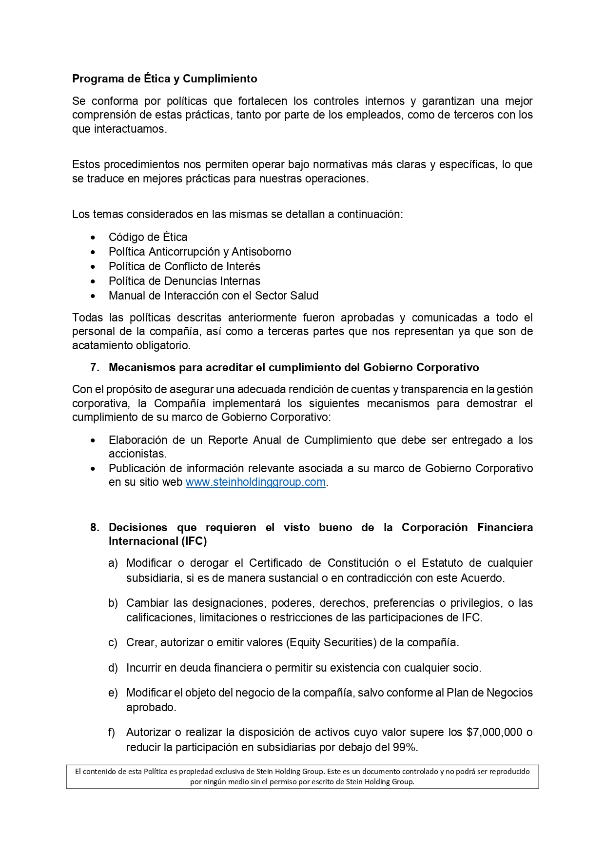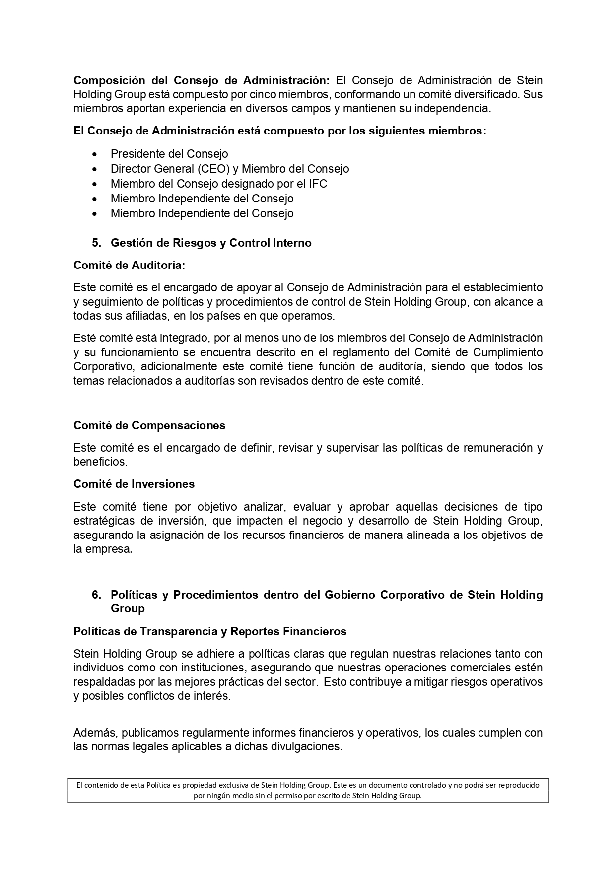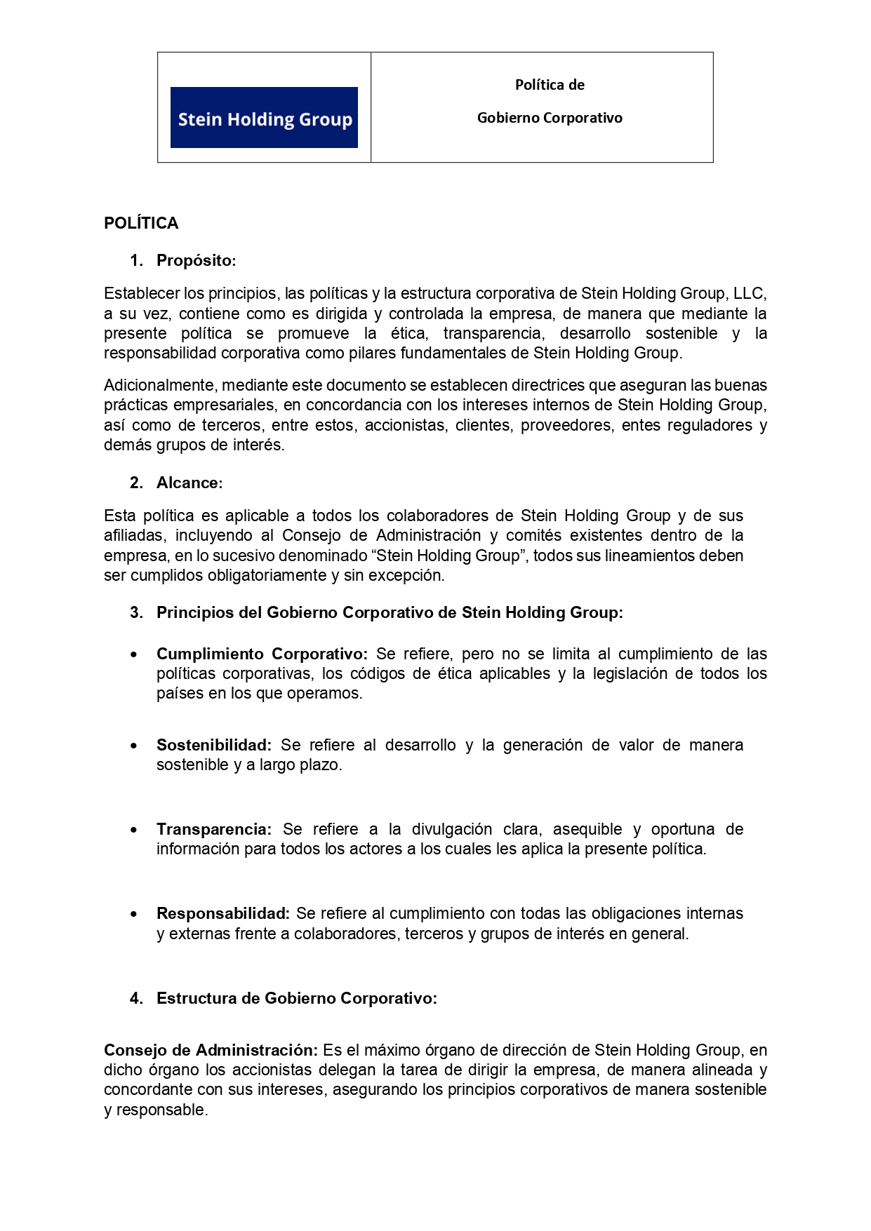 INFORMACIÓN PARA EL INVERSIONISTA Gobierno Corporativo | Politica de Gobierno Corporativo Ver Documento | Consejo de Administración y Comités Ver Documento Volver Contáctanos Nombre Completo Correo electrónico Teléfono / Móvil Motivo de consulta Enviar Stein Holding Group Visítanos en LinkedIn STEIN HOLDING GROUP, LLC. Inicio Ir al sitio SteinCares